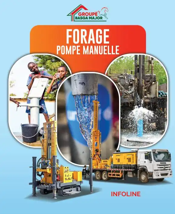 Groupe Basga Major SARL est votre partenaire de confiance pour des forages modernes, fiables et durables au Burkina Faso. Nous mettons notre expertise technique et notre rapidité d’exécution au service des particuliers, communautés et entreprises pour garantir un accès à une eau potable claire et abondante.